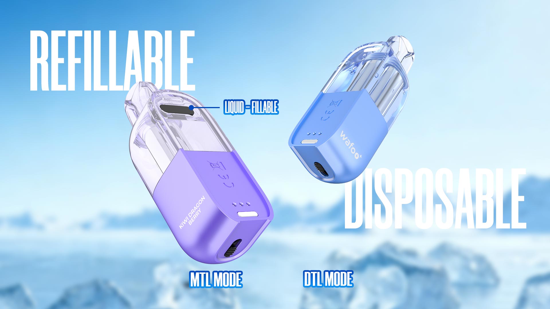 (1)PURE CLARITY, TASTE BEST, ENJOY FULLY        (2)DUAL MESH COIL:FLAVOR MASTERY EVERY TIME       (3)REFILLABLE TRANSPARENT TANK, POWER BAINK